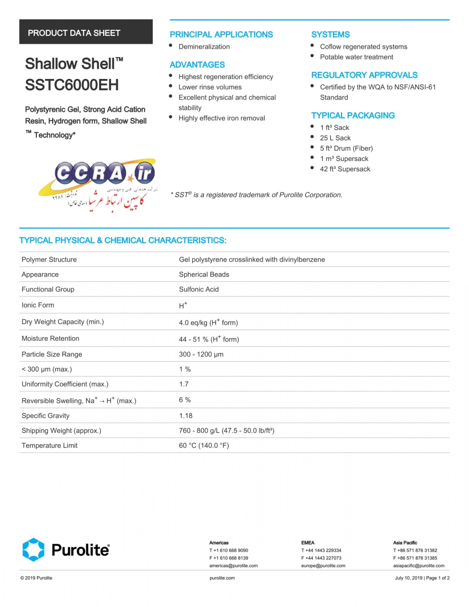 ژل پلی استایرنیک، رزین کاتیونی قوی، فرم هیدروژن، تکنولوژی پوسته سطحی کم عمق (shallow shell)